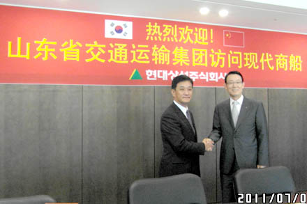 當(dāng)?shù)貢r(shí)間7月4日12時(shí),吳宗昌董事長一行抵達(dá)韓國仁川國際機(jī)場,韓國現(xiàn)代商船投資規(guī)劃部李京旭副部長在機(jī)場迎接。韓國現(xiàn)代商船李碩熙社長在現(xiàn)代集團(tuán)總部舉行了隆重的歡迎儀式并致辭。李社長指出,他非常感謝今年3月份訪問濟(jì)南時(shí)山東交運(yùn)集團(tuán)給予的熱情款待,隨著雙方的交流增多,雙方的合作不斷引向深入并已取得初步成果,他希望吳宗昌董事長這次訪問成為推進(jìn)雙方進(jìn)一步合作新起點(diǎn)和契機(jī)。歡迎儀式后,韓國現(xiàn)代商船樸鎮(zhèn)浩部長介紹了韓國現(xiàn)代商船的整體情況。