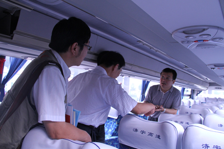 媒體記者逐一參觀了濟南長途汽車總站,零距離體驗了駕駛員人臉識別、酒精檢測、車載GPS、3G視頻等車站源頭安全管理和班車實時動態(tài)監(jiān)控情況;深入檢票一線和班車發(fā)車區(qū),與黨的十八大代表、山東省勞模李文親切交流;登上LNG清潔能源高級商務車,向安全行車370萬公里“零事故”駕駛員、省勞模賈湘鳴,詳細了解安全運營節(jié)能情況;在96369服務熱線、總服務臺、“英語崗”、“女士購票窗口”等特色服務崗位,體驗了電話預約售票及特色服務流程。在接下來的座談中,王謙總經(jīng)理詳細介紹了集團各產(chǎn)業(yè)板塊近年來不斷發(fā)展的基本概況、商業(yè)模式創(chuàng)新探索的效果以及今后工作的發(fā)展方向等,并對各新聞媒體關(guān)于集團戰(zhàn)略發(fā)展規(guī)劃、重點項目工程建設(shè)、不同產(chǎn)業(yè)創(chuàng)新舉措等提問進行了解答。各新聞媒體對集團公司堅持“安全十六字方針”和“人文關(guān)懷”理念,建設(shè)本質(zhì)性安全企業(yè)、在創(chuàng)新創(chuàng)效、節(jié)能減排等方面采取的有效措施以及“親情化管理,友情化服務”等方面傾注了較多關(guān)注,并提出了一些建設(shè)性的意見和建議。
