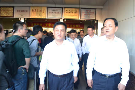 2012年9月29日和30日,省交通運(yùn)輸廳高洪濤副廳長(zhǎng)一行接連兩天蒞臨集團(tuán)檢查指導(dǎo)節(jié)日旅客高峰運(yùn)輸工作,詳細(xì)了解各環(huán)節(jié)運(yùn)輸部署,提出了明確的指導(dǎo)意見(jiàn)。省道路運(yùn)輸廳江成局長(zhǎng)、省廳運(yùn)輸管理處王博處長(zhǎng)、省廳安全監(jiān)督處趙儉調(diào)研員、省交通公安處鄭培瑞副處長(zhǎng)、省廳運(yùn)輸管理處徐明松主任等陪同檢查。