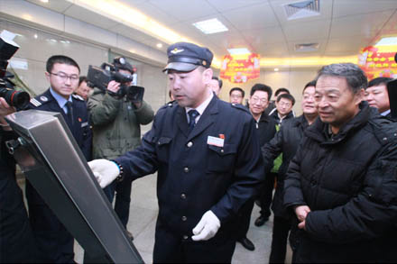 楊傳堂部長特別叮囑車站工作人員說:“安全檢查是車站服務的第一道關口,要充分利用人防、物防、技防等綜合手段加強關口職能到位,要牢固樹立安全第一的觀念,確保旅客乘車安全?!?