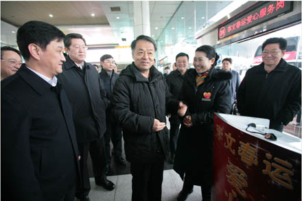 1月21日,交通運輸部楊傳堂部長及部有關領導在張建國副省長、賈學英廳長、高洪濤副廳長、江成局長的陪同下,蒞臨集團長途汽車總站視察指導春運工作,并親切看望和慰問了一線干部職工。集團吳宗昌董事長、王謙總經(jīng)理等相關領導陪同視察。
