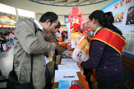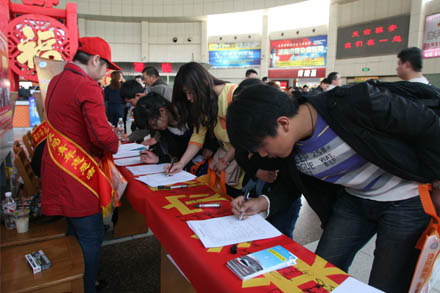 在總站候車大廳關注災區(qū)群眾、祈福平安簽字現(xiàn)場,設置了氣象災難、氣象預警及預防科普知識展板,志愿者將宣傳材料發(fā)放到每一名旅客手中,并邀請他們在簽名條幅上寫下對雅安地震災區(qū)群眾的祝福話語和姓名,為雅安的災區(qū)人民祈福。