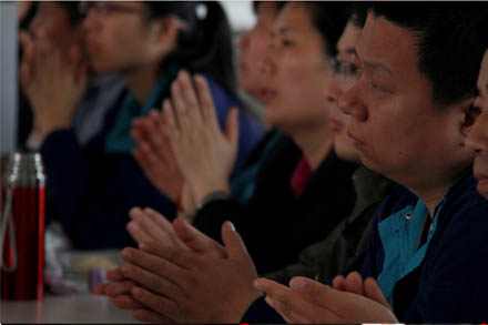 集團(tuán)“功勛員工”宋洋同志生前的師傅、同事及兄弟單位的合作同事用一個(gè)個(gè)鮮活生動(dòng)的故事講述了宋洋——一個(gè)平凡駕駛員和他震動(dòng)一座城市的感人事跡。報(bào)告者跌宕起伏的情感和樸實(shí)真摯的講述感染著每一位現(xiàn)場(chǎng)聽(tīng)眾,有的熱淚盈眶,有的輕拭淚水,有的索性拿起手機(jī)記錄下報(bào)告會(huì)的實(shí)況。每一段報(bào)告結(jié)束,都會(huì)響起干部員工感觸至深的掌聲。