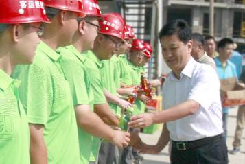 七月盛夏,連日來的高溫和暴雨天氣,給重點基建項目工程施工以及一線職工安全生產(chǎn)工作帶來了嚴峻考驗,集團公司領(lǐng)導高度重視,7月24日,集團公司董事長、黨委書記吳宗昌、集團公司董事、工會主席張志堅、紀委書記劉鳳義、總經(jīng)濟師馮唯一等領(lǐng)導組成“送清涼”慰問組,專程來到濟南市重點工程——“濟南西客站綜合客運樞紐工程”項目部,向冒著酷暑戰(zhàn)斗在生產(chǎn)一線的廣大職工表示親切慰問,并為他們送去防暑降溫物品和一份關(guān)愛。