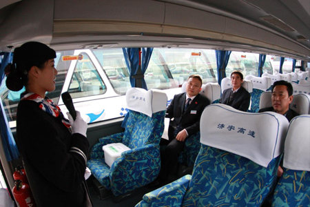 考核組分別以聽(tīng)取匯報(bào)、考察現(xiàn)場(chǎng)、查閱資料的形式,對(duì)兩家單位的文明創(chuàng)建工作進(jìn)行了檢查指導(dǎo)。在濟(jì)宇高速,第五考核組現(xiàn)場(chǎng)視察了濟(jì)宇高速文化展室、車(chē)場(chǎng)建設(shè)、駕駛員休息室等,登上“宋洋班車(chē)”聆聽(tīng)了宋洋同志先進(jìn)事跡、“宋洋車(chē)隊(duì)”特色服務(wù)及濟(jì)宇高速的車(chē)廂文化建設(shè)情況;在濟(jì)南聯(lián)運(yùn)總公司,第四考核組相繼視察了企業(yè)文化展板,聽(tīng)取了總公司及各部門(mén)介紹,參觀了圖書(shū)閱覽室,并深入到公司現(xiàn)場(chǎng)進(jìn)行參觀指導(dǎo)。通過(guò)認(rèn)真、細(xì)致的考核,考核組對(duì)濟(jì)宇高速、濟(jì)南聯(lián)運(yùn)總公司文明創(chuàng)建工作均給予充分肯定,對(duì)創(chuàng)建工作中的亮點(diǎn)給予了高度評(píng)價(jià)。集團(tuán)公司黨委副書(shū)記楊國(guó)強(qiáng)陪同檢查,要求各申報(bào)單位要再接再厲,結(jié)合正在開(kāi)展的黨的群眾路線教育實(shí)踐活動(dòng)要求,以文明創(chuàng)建工作為契機(jī),通過(guò)加強(qiáng)組織和制度建設(shè),開(kāi)拓思路,創(chuàng)新形式,將文明創(chuàng)建工作與單位生產(chǎn)經(jīng)營(yíng)融合得更加緊密,提質(zhì)增效,推動(dòng)集團(tuán)公司各項(xiàng)工作再上新臺(tái)階。