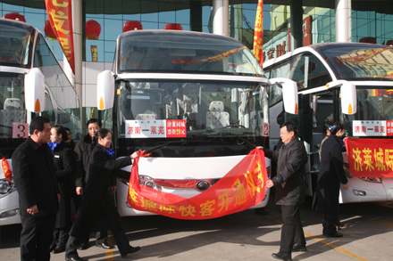 2014年1月1日,濟萊城際快客升級啟動開通儀式在濟南長途汽車總站舉行,濟南市交通運輸局局黨委委員、客運管理辦公室主任毛賢強、運輸管理辦公室客運處處長郭浩、集團公司總經(jīng)理王謙、副總經(jīng)理田景東、安全總監(jiān)朱永順等領導參加了此次開通儀式。