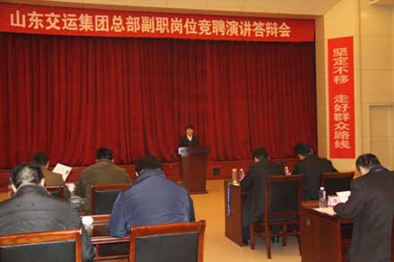 根據(jù)《山東省交通運輸集團有限公司總部副職崗位競聘工作實施方案》有關要求,集團公司于1月14日至16日在多功能廳舉行了總部部分中層副職崗位競聘演講答辯會。集團公司領導班子成員、財務總監(jiān)、監(jiān)事及各場次競聘部室負責人擔任了演講答辯會評委。