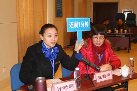 演講答辯按照競聘職位分組進行,共設1個主會場、4個工作室,會前通訊工具統(tǒng)一保管,考前、考后人員不得隨意外出,相互不見面、不交流,確保了考場紀律和公平性。每位競聘人員通過10分鐘的演講介紹自己的基本情況、工作簡歷、競爭優(yōu)勢、工作實績和對競聘崗位工作的設想,并在5分鐘內(nèi)完成審題、思考和答辯。評委按照《演講答辯評分表》的標準進行現(xiàn)場打分,每組職位演講答辯結(jié)束后統(tǒng)一匯總計分。