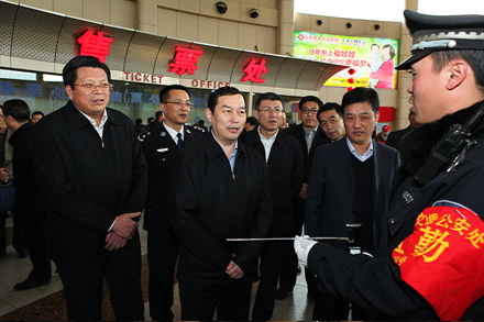張省長一行首先查看了總站旅客進站安檢處,詳細了解總站春運安檢工作情況,并對總站應用“摩爾”探測儀、防爆桶等有效防范危險爆炸物品的做法表示了充分肯定。當?shù)弥傉緦崿F(xiàn)春運前期安檢“零隱患”目標時,張省長既感到欣慰,又十分關切地提醒工作人員不能有絲毫放松和懈怠,要堅決堵住危險品進站上車,時刻繃緊安全生產(chǎn)這根弦,堅持一抓到底、一以貫之、一如既往地抓好企業(yè)安全生產(chǎn)工作。