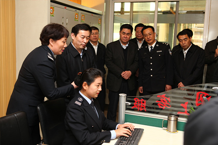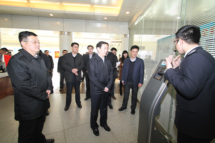 參觀售票處科室文化后,張省長對總站企業(yè)文化建設給予了肯定與鼓勵。當看到96369服務熱線人員緊張忙碌的工作情景時,對熱線工作人員堅守崗位、無私奉獻的精神表示贊許,并致以親切問候。