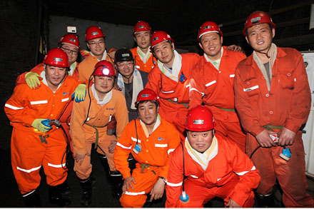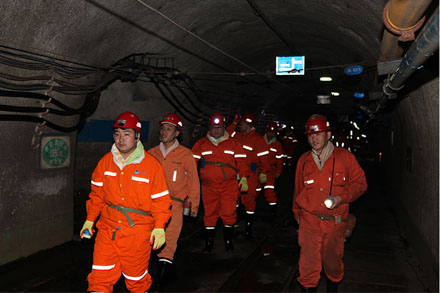 男隊(duì)員們按照礦上安排,統(tǒng)一更換工作服,在工作人員的引導(dǎo)下,乘坐罐籠車以每秒