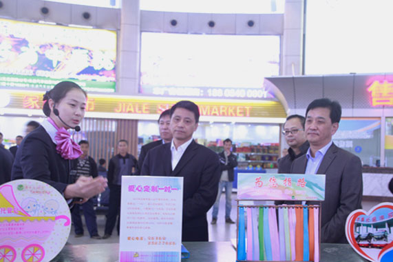 11月5日,江蘇大運交通運輸集團(tuán)股份有限公司董事長單建華一行6人到集團(tuán)公司考察調(diào)研,吳宗昌董事長陪同,實地參觀了總站售票、總服務(wù)臺、報班處、監(jiān)控中心及服務(wù)熱線,就企業(yè)“十三五”發(fā)展規(guī)劃、新形勢下傳統(tǒng)道路客運轉(zhuǎn)型升級、互聯(lián)網(wǎng)時代如何加強兩地互聯(lián)互通與合作等課題進(jìn)行了座談交流。集團(tuán)規(guī)劃發(fā)展部、客運經(jīng)營部和資產(chǎn)技術(shù)部負(fù)責(zé)人陪同調(diào)研。