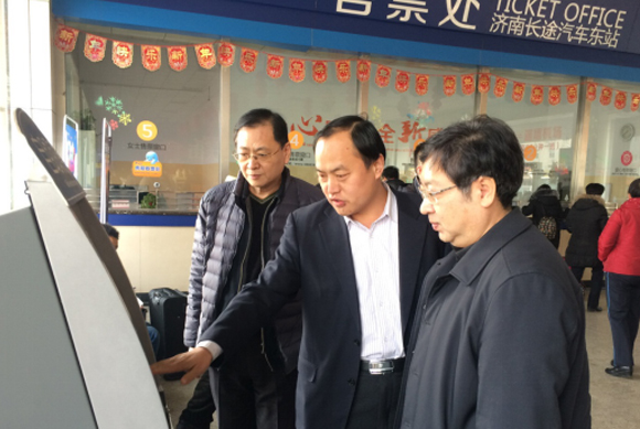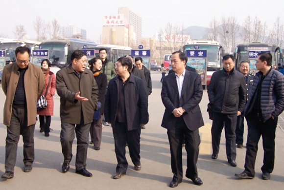 2月4日,濟南市春運領(lǐng)導小組黃主任一行在交通局運管辦崔建主任等領(lǐng)導的陪同下,到汽車東站調(diào)研指導春節(jié)旅客運輸工作。集團副總經(jīng)理田景東、相關(guān)部室負責人及站長張憲賓陪同視察。