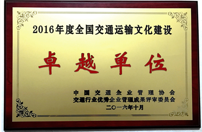 集團(tuán)公司榮獲2016年度全國(guó)交通運(yùn)輸文化建設(shè)卓越單位稱號(hào)