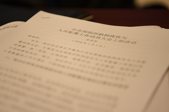 會議首先由范成??偛脗鬟_了《總部組織機構優(yōu)化及人員配置工作方案》,向參會人員明確了總部此次機構改革的指導思想、任務目標、遵循原則,通報了機構優(yōu)化調整及人員配置方案,并對下一步工作做了部署。