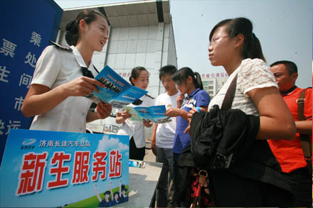 臨近中秋假期,總站推出“仲秋送紅包”的活動(dòng),為在總站網(wǎng)站預(yù)訂三張以上仲秋當(dāng)日客票的旅客送出 “仲秋紅包”——會(huì)員優(yōu)惠卡,為旅客的“團(tuán)圓”之旅增添一份愉悅的感受;此外,各大高校開(kāi)學(xué)在即,總站特別在旅客到達(dá)區(qū)設(shè)立了新生服務(wù)站,開(kāi)通便利接站的綠色服務(wù)通道,為廣大新生及家長(zhǎng)提供各種班次信息和引導(dǎo),幫助新生順利到校;為保證節(jié)日期間旅客運(yùn)輸安全,總站進(jìn)一步強(qiáng)化了對(duì)班車和站區(qū)的安保力度,在候車大廳設(shè)立了消防器材使用、緊急逃生技巧等內(nèi)容的安全常識(shí)展板,為過(guò)往旅客普及安全知識(shí),提高安全意識(shí)。