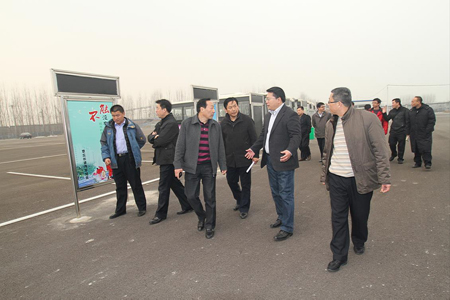 章丘市市長劉天東(左四)、副市長趙立元(左三)、交通運輸局局長王鍵(左一)在山東交運集團副總經(jīng)理田景東(右三)的陪同下,到臨時站檢查指導(dǎo)新站啟用工作。