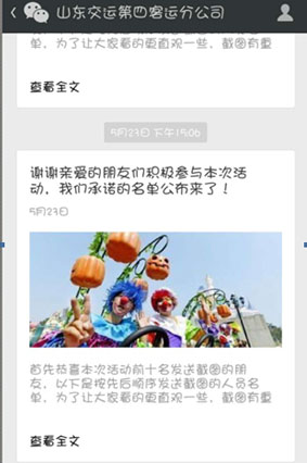 57,第四客運分公司公眾微信號(sdjydsky)正式開通,并于51825日開展了“微信集贊賽,歡樂近郊游”活動。