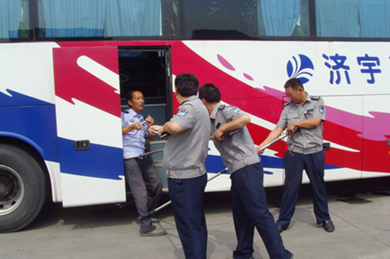 應急演練期間分別模擬了班車與停車場內(nèi)突發(fā)違法犯罪事件的緊急處理情況。首先安??茊T工分別通過值班室內(nèi)監(jiān)控、場內(nèi)巡視等方式發(fā)現(xiàn)“不法分子”,以最快速度趕往現(xiàn)場,分別持防爆叉、橡膠棍等工具對“不法分子”進行圍困、制服。演練結束后,安??七€對大院內(nèi)消防器材的配備完好程度進行統(tǒng)一檢查,確保全部設施完好有效。