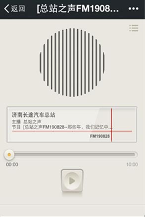 近日,濟(jì)南長(zhǎng)途汽車總站充分發(fā)揮互聯(lián)網(wǎng)在企業(yè)營(yíng)銷宣傳中的積極作用,開拓思路,全新搭建了集企業(yè)宣傳與服務(wù)旅客相結(jié)合的嶄新宣傳平臺(tái)——總站專屬電臺(tái)“總站之聲FM190828”。
