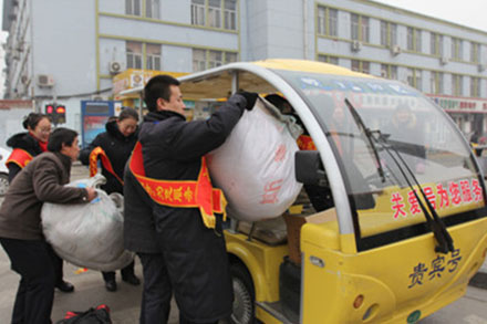 一是送溫暖暖人心。南區(qū)團員們利用業(yè)余時間熬制了紅糖姜水,在早上9:00和下午14:00,分別為候車旅客免費送飲,為冬日候車的旅客送去了暖暖的情誼和貼心的服務。二是送行李免等待。在濟洛路總站南區(qū)站牌,設立了2個流動服務崗,安排專車為乘公交轉乘到車站的旅客提供免費行李推送服務,并設立購票顧問和流動售票員,不但減少了旅客的排隊購票的麻煩,還縮短了購票乘車的時間。三是送提醒保安全。團員們在公交站牌設立了安全崗,倡導旅客安全乘車,拒乘黑車,并向旅客派發(fā)安全乘車提醒卡,告知旅客安全乘車常識和如何辨別黑車。