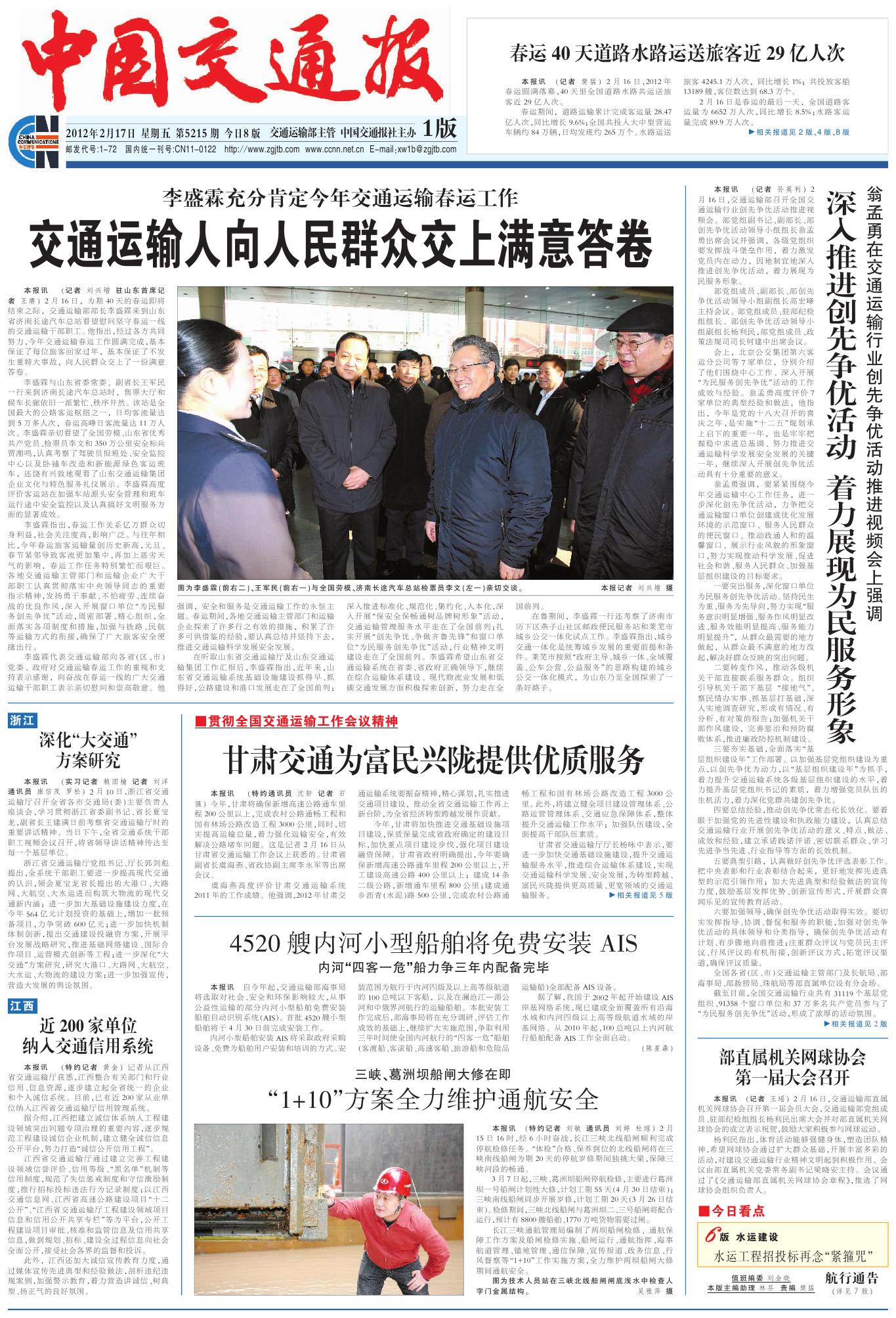 《中國交通報》--交通運輸人向人民群眾交上滿意答卷