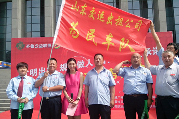 6月3日上午,山東交運出租公司參加了由山東交通廣播、齊魯電臺、山東商報、濟南交警主辦的“文明行車、規(guī)矩做人、百萬車友共承諾”的齊魯公益大聯(lián)盟“愛心助考”活動啟動儀式。