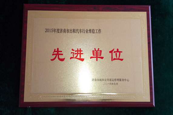 1月26日,在濟南市客管中心召開的市出租企業(yè)年會上,山東交運出租榮獲2015年度維穩(wěn)工作先進單位榮譽稱號。